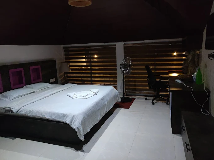 The Superior Room offers a spacious, air‑conditioned environment with generously sized beds and efficient layout for comfort. Guests enjoy access to a shared swimming pool, communal kitchen, living room, and parking, making it ideal for group or family stays. Each room features a flat‑screen TV, fan, charging points, and cozy woollen blankets for cooler evenings. Practical amenities include a kettle and all essential toiletries in the private attached bathroom, ensuring convenience alongside privacy. Thoughtfully designed with smart storage and shared facilities, this setup balances cleanliness, comfort, and community for a relaxed and enjoyable stay..